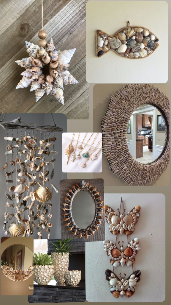 The following pictures include a set of distinctive ideas for wonderful decorative pieces, decorated with snails and marine shapes, and among them are a number of distinctive mirrors defined with frames of snails and lobes, as well as a number of shapes of vases that were decorated from the inside and outside with snails and shells